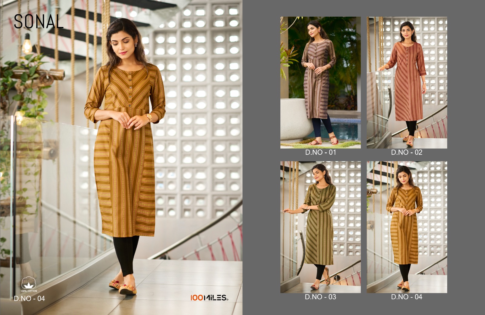 | Catalog Name | 100 Miles Sonal Fancy Printed Cotton Kurti Collection |