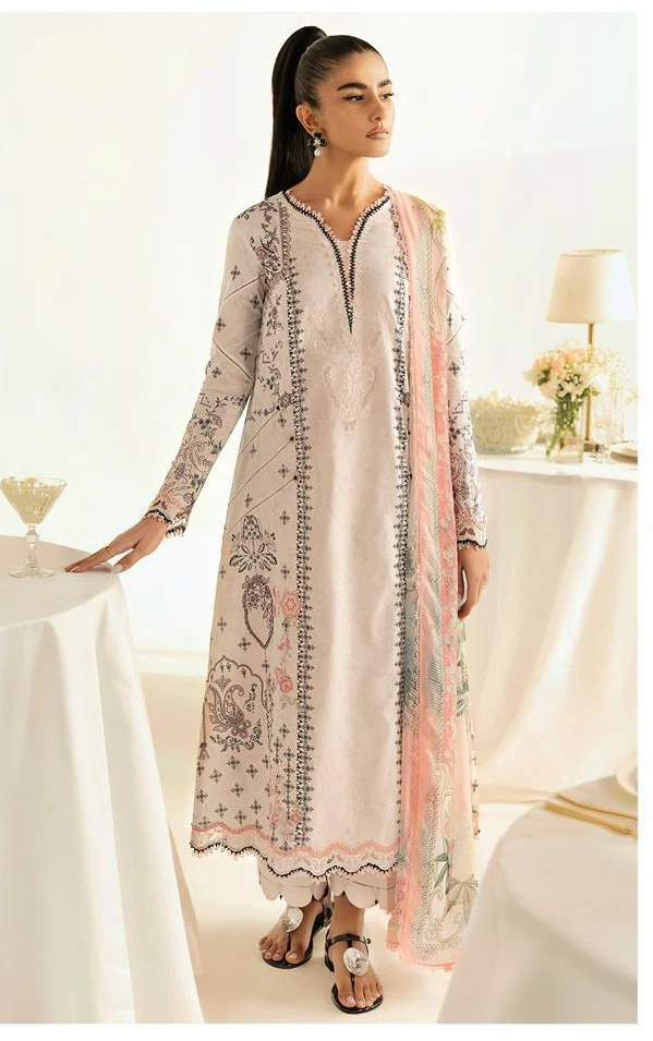 Top: Cotton Print With Embroidery Patches | Bottom: Semi Lawn | Dupatta: Chiffon (Pakistani Copy) |