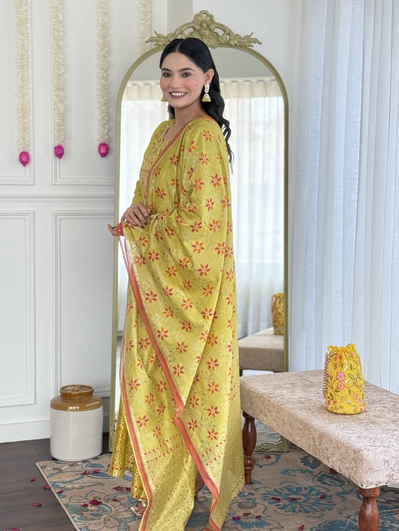 Top/ Bottom: Viscose Chanderi | Dupatta: Jacquard | Length: 45 Inch (Size Set: S To 2XL) |