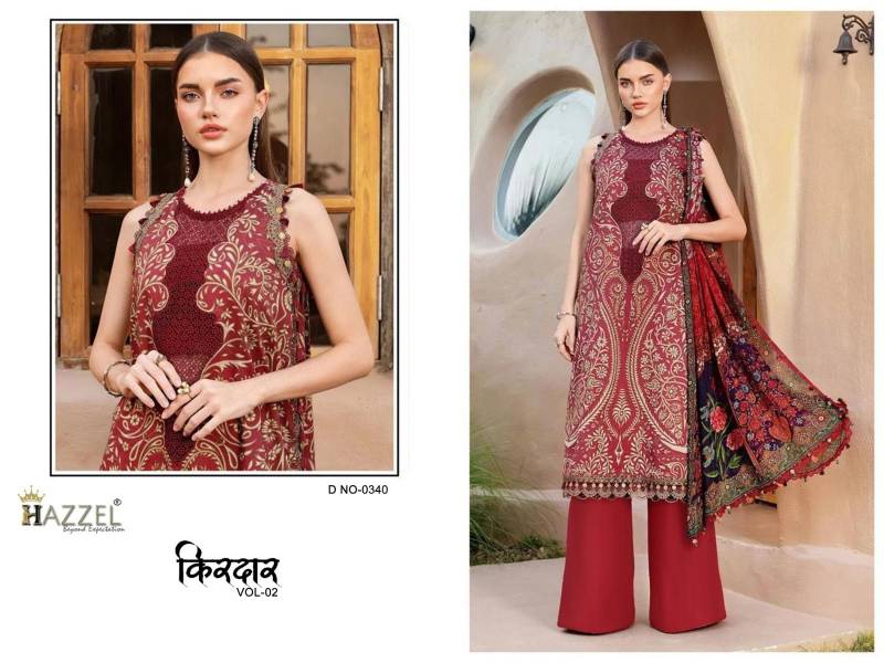 Hazzel Kirdar Vol 2 Cotton Dupatta Embroidered Pakistani Suit Wholesale Catalog Collection Exporter