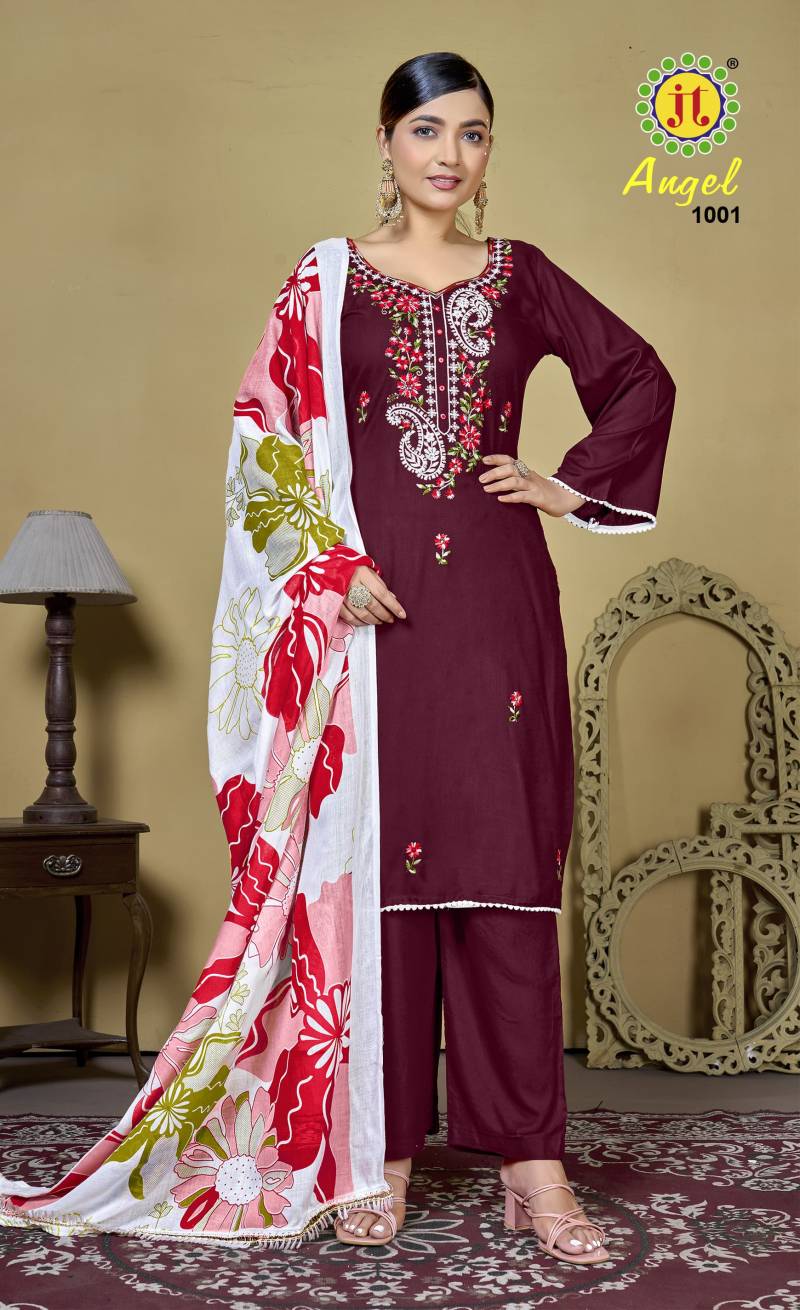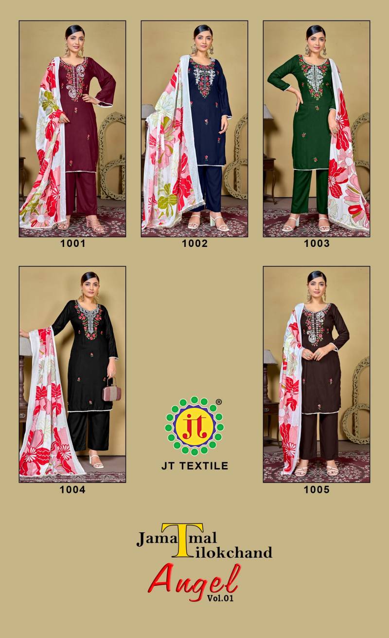 Jt Angel Vol 1 Rayon Embroidered Dress Material Wholesale Catalog Collection Exporter