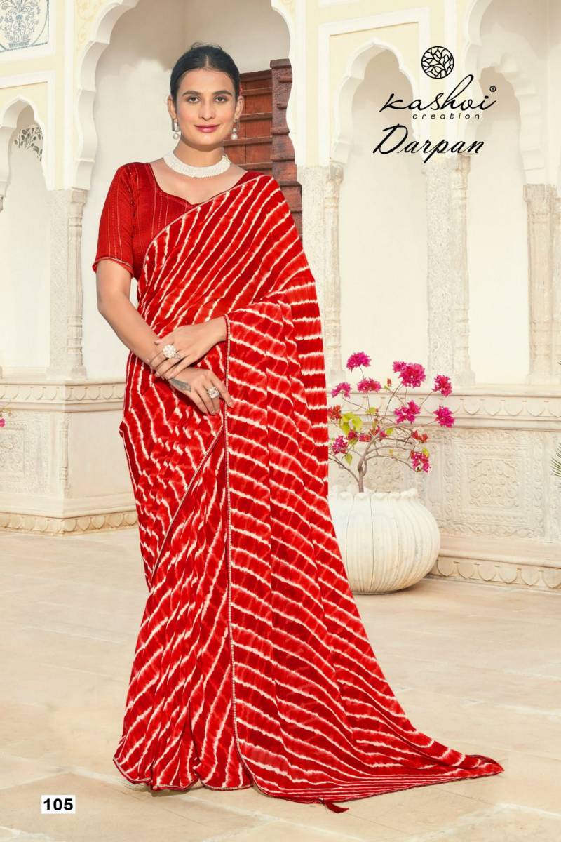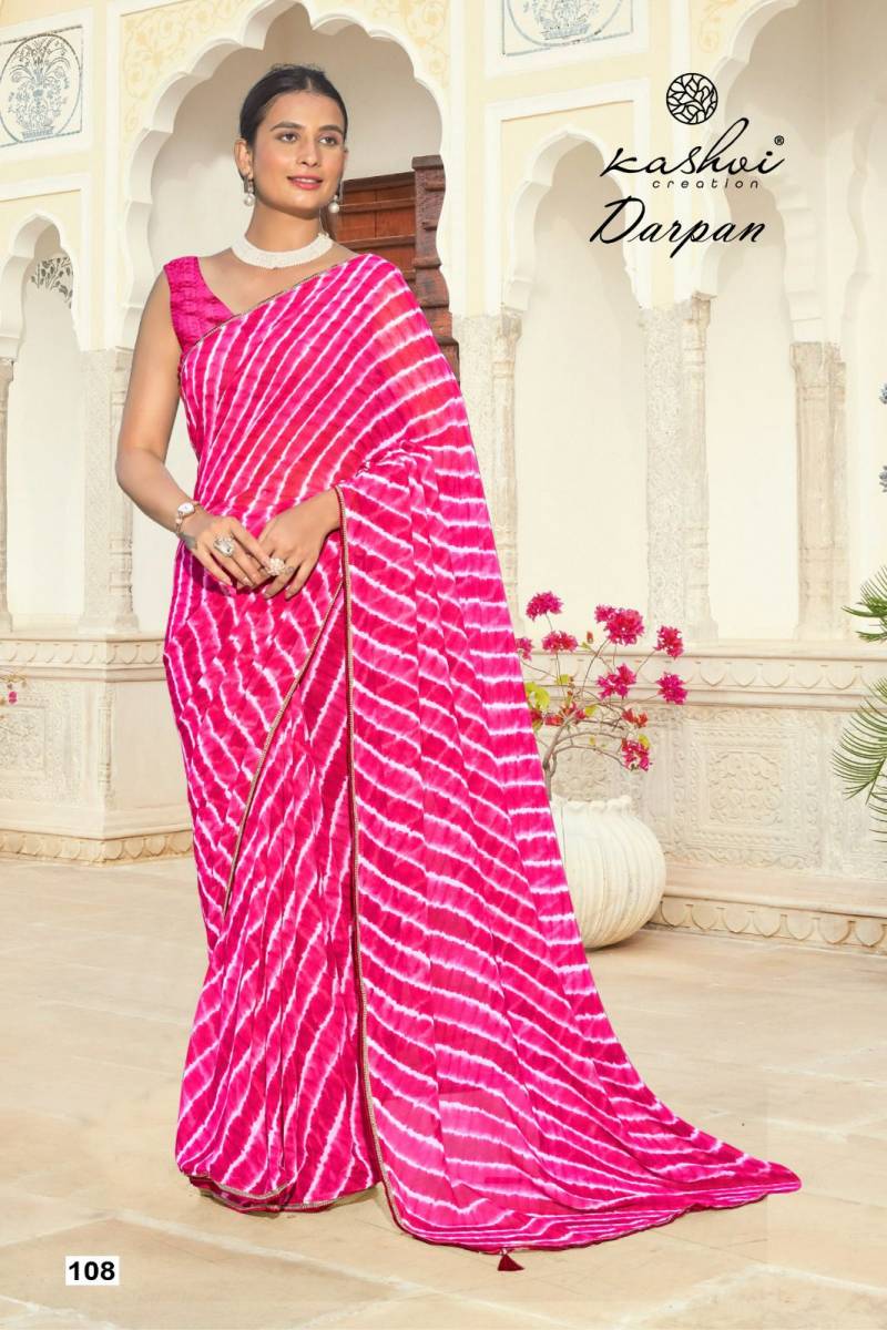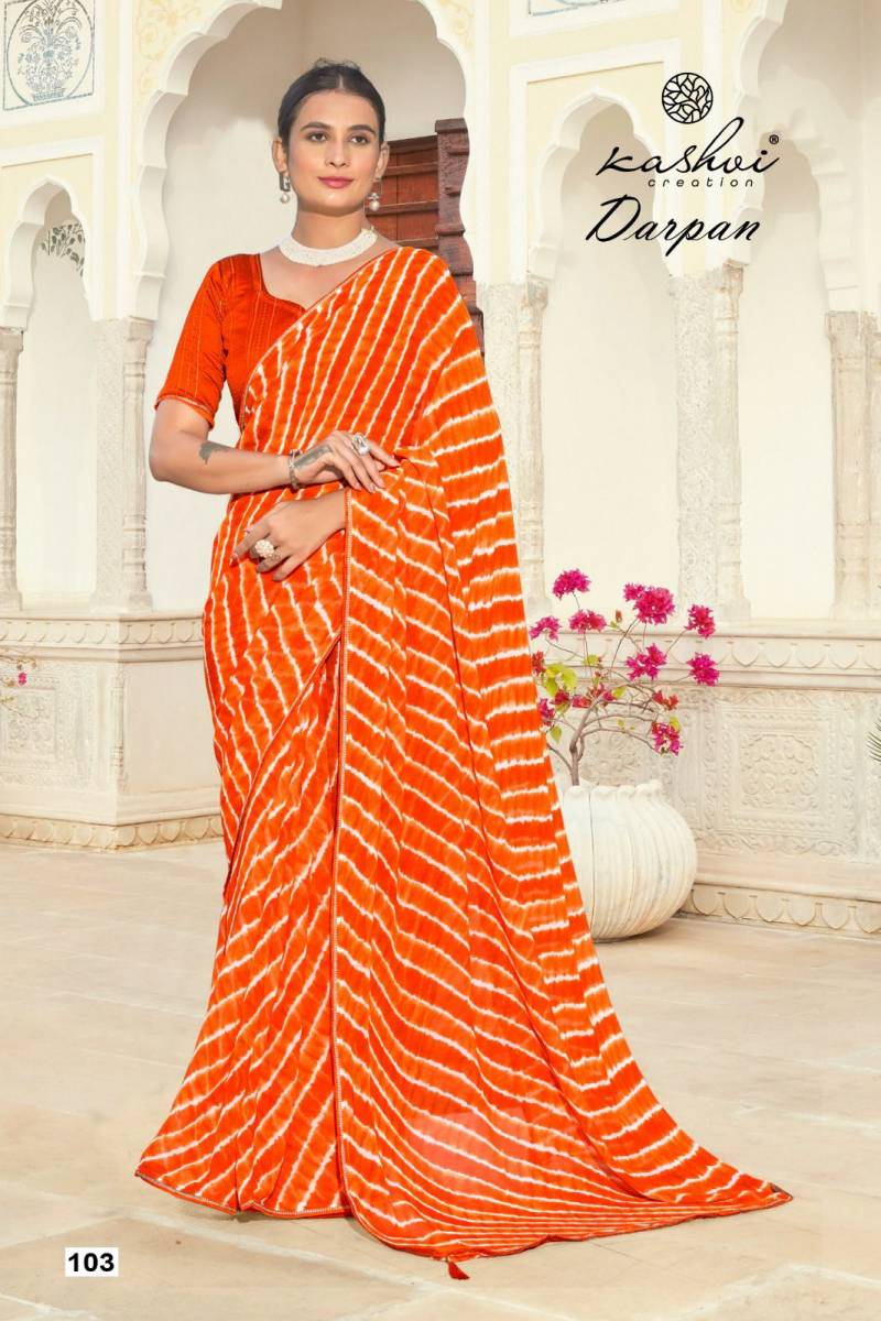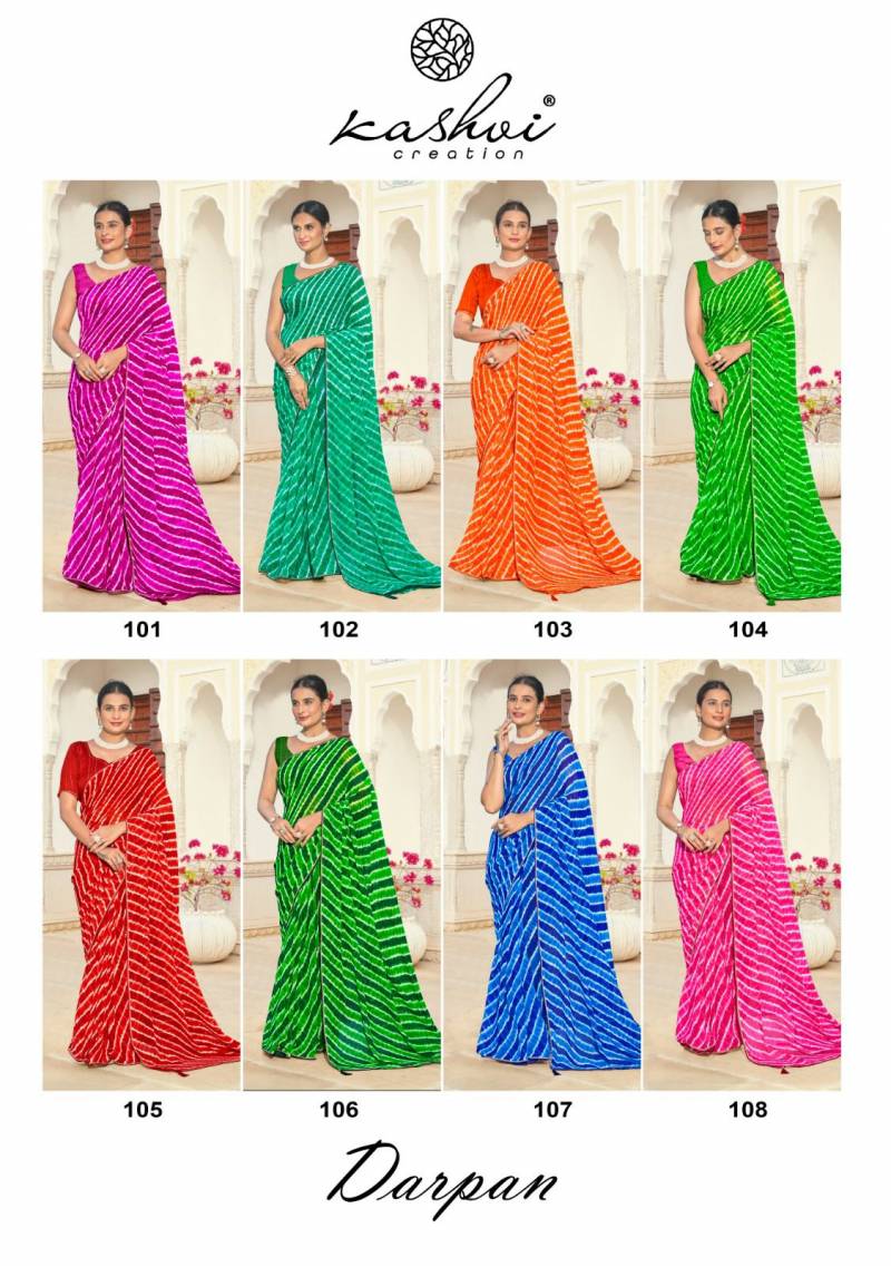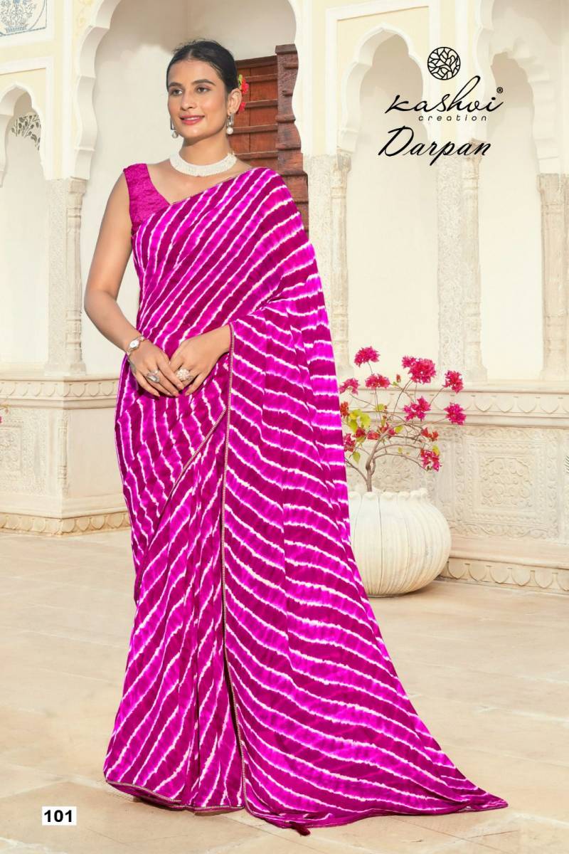 Kashvi Darpan Georgette Lehariya Printed Saree Wholesale Catalog Collection Supplier