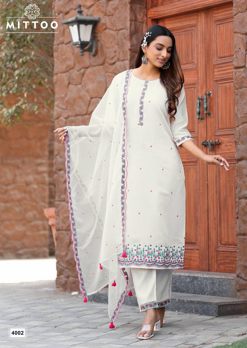 Mittoo Saanj Modal Silk Top Bottom With Dupatta Collection