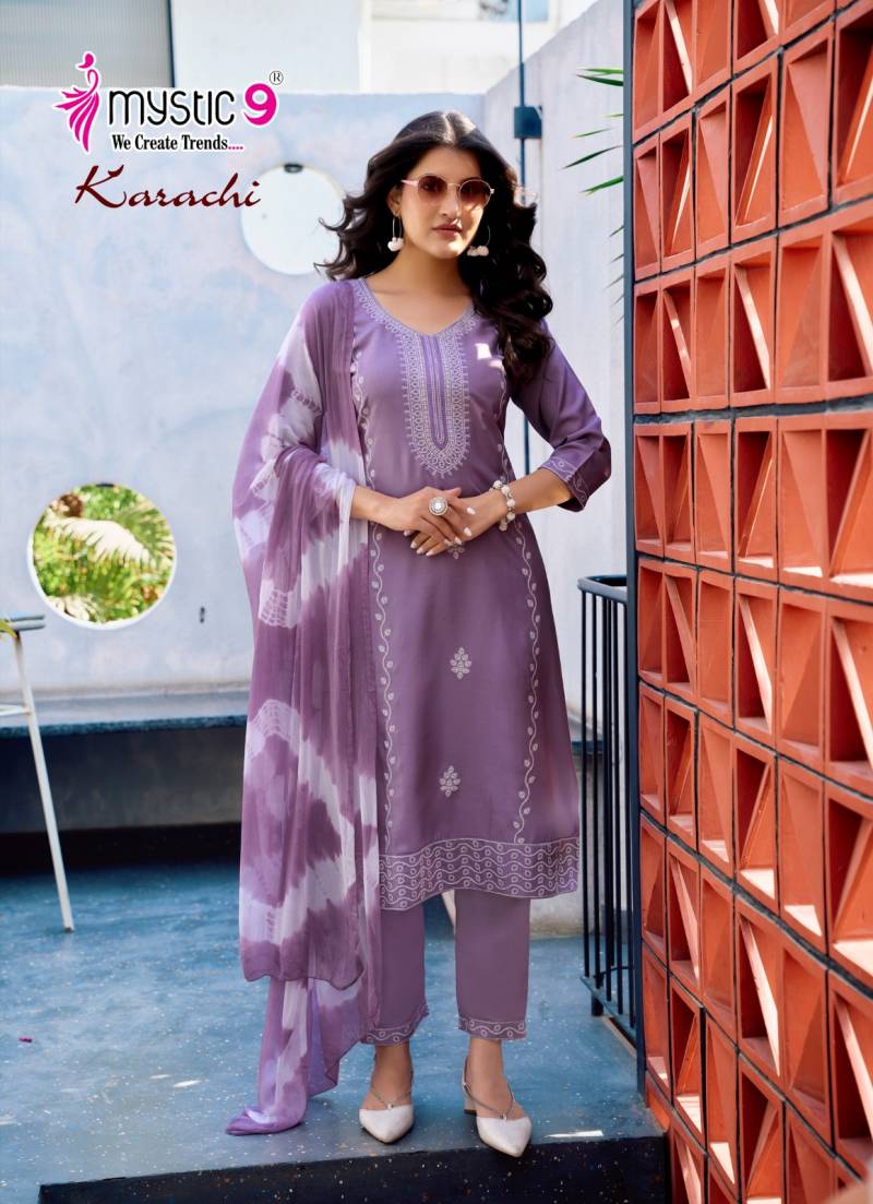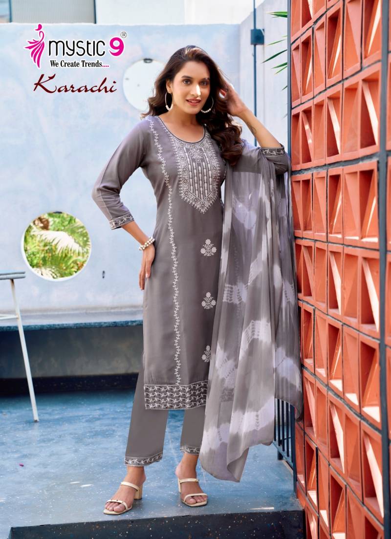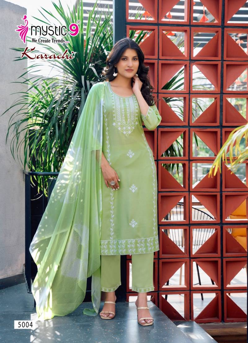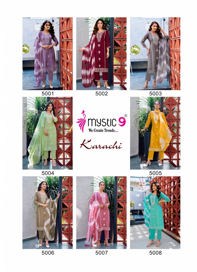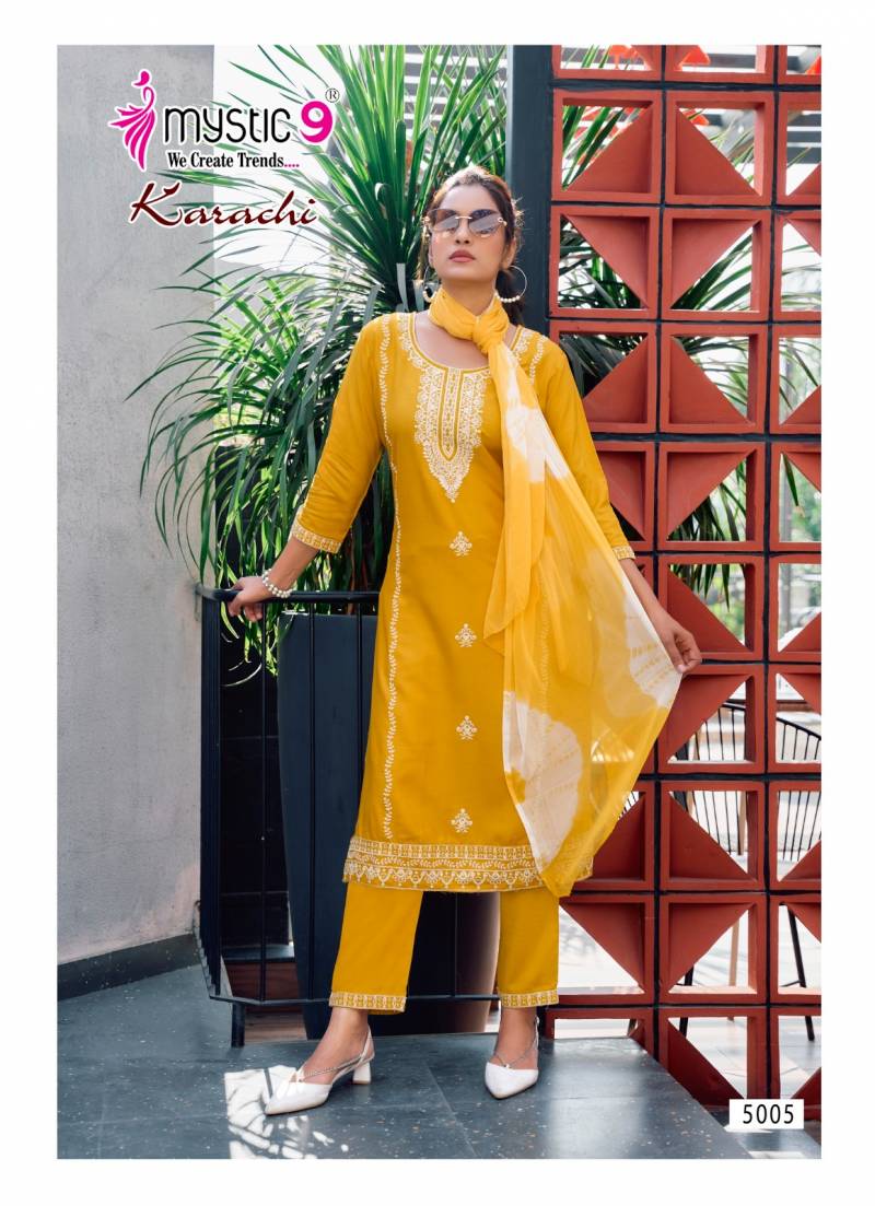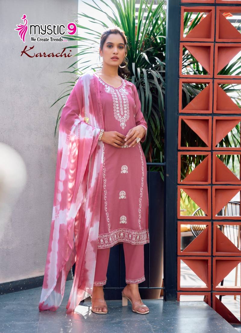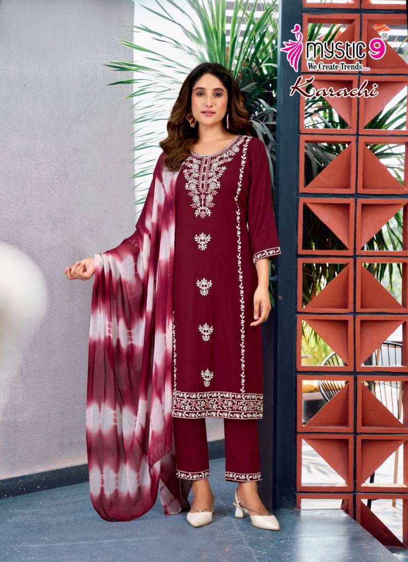 Mystic 9 Karachi Vol 5 Rayon Kurti Bottom With Dupatta Catalog Wholesale Collection