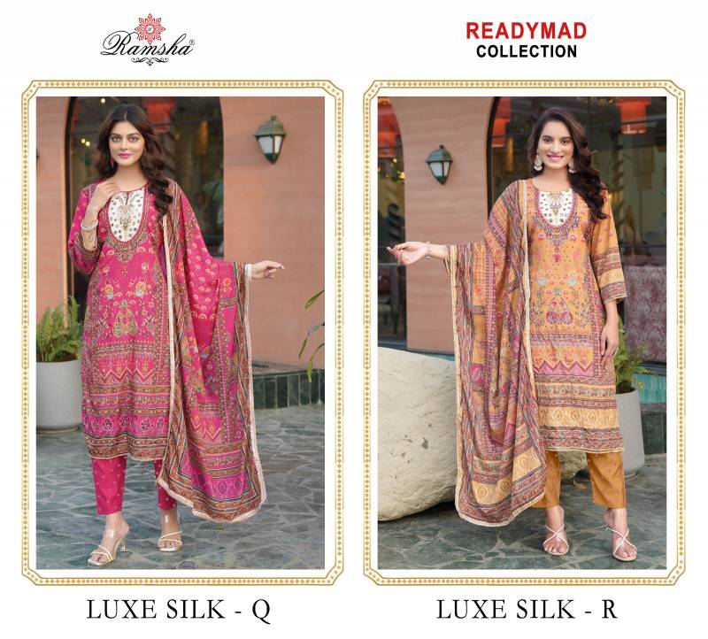 Ramsha Luxe Silk Q And R Ready Made Pakistani Salwar Suits Wholesale Catalog Collection Supplier