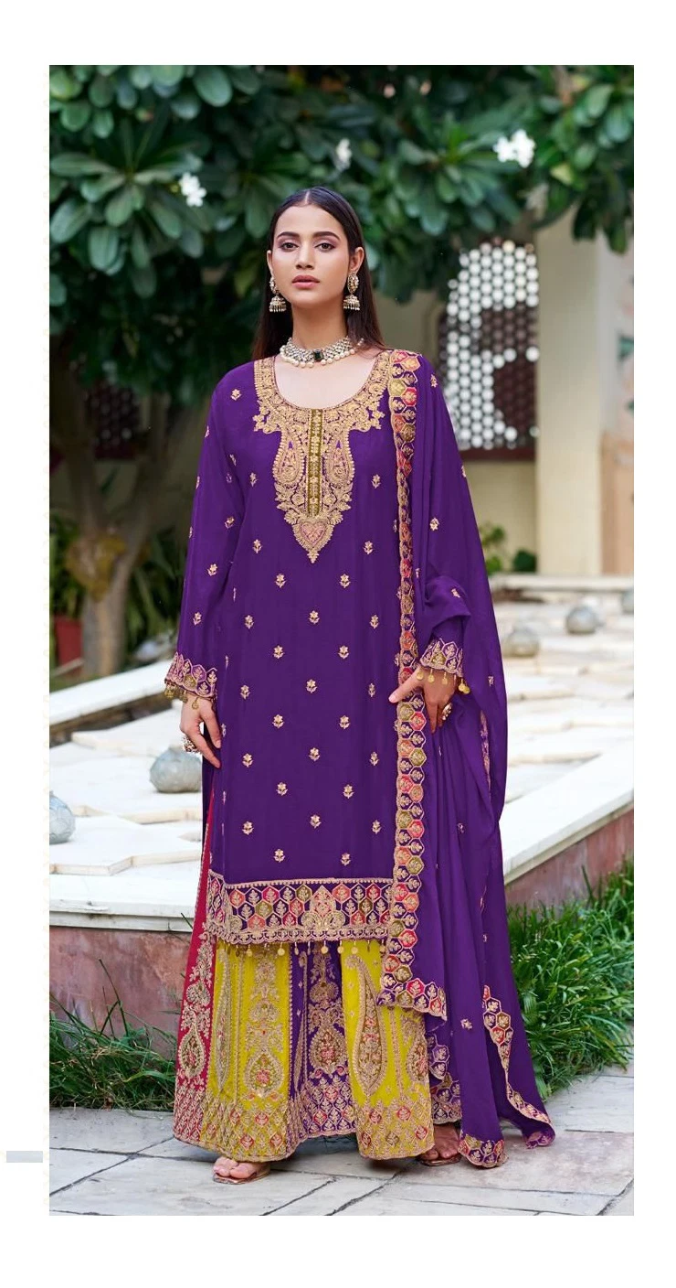 Fabric Description Top: Chinon Embroidered | Bottom: Sarara Chinon | Dupatta: Embroidered Chinon (Pakistani Copy)