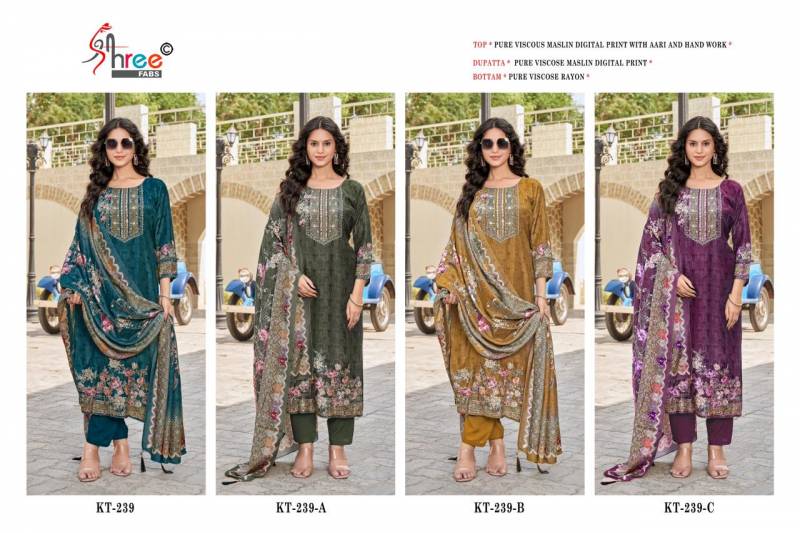 Shree Kt 239 Viscose Maslin Digital Printed Salwar Suits Catalog Wholesale CollectionShree Kt 239 Viscose Maslin Digital Printed Salwar Suits Catalog Wholesale Collection