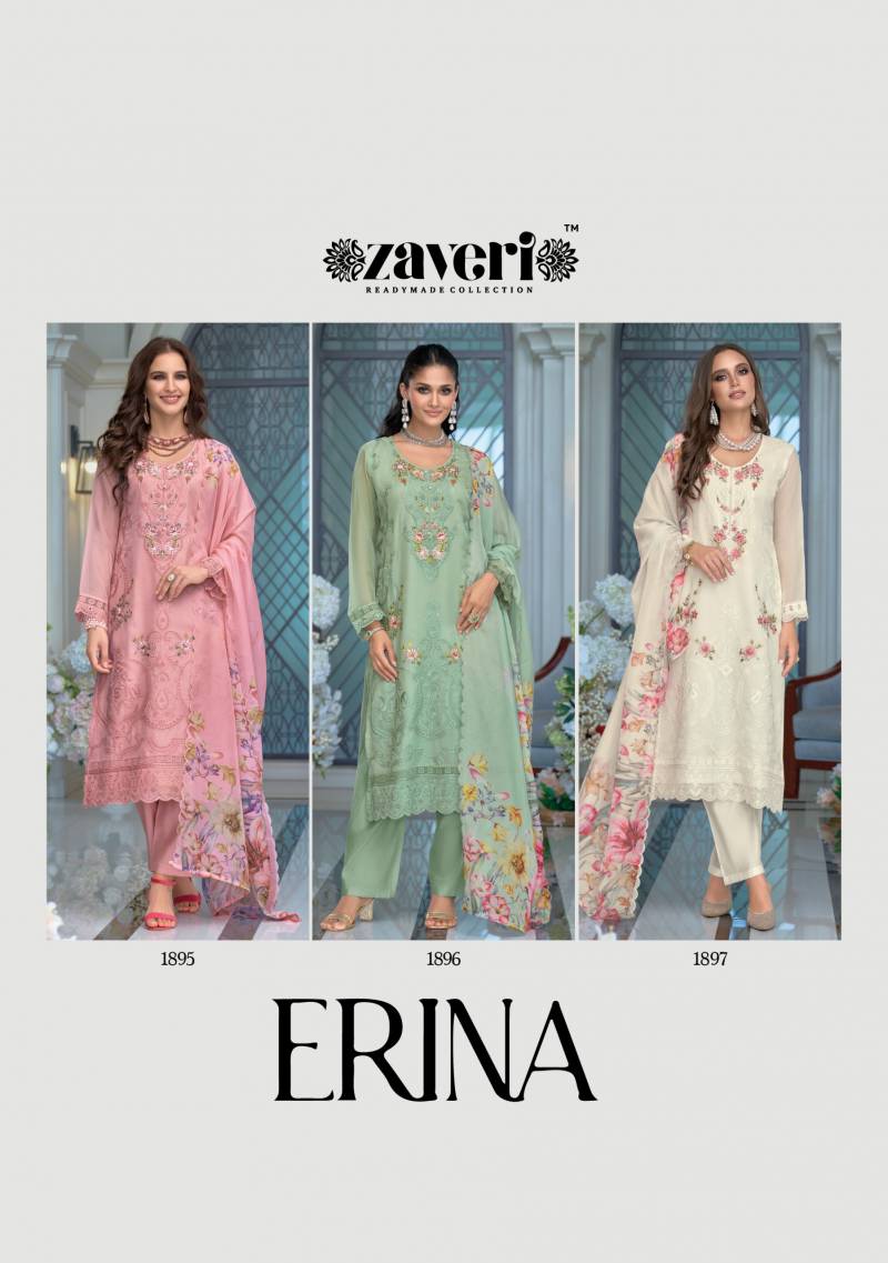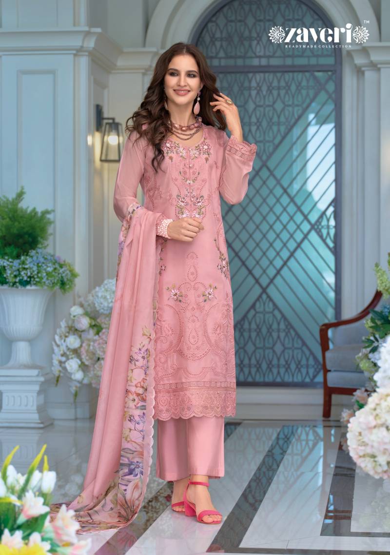 Zaveri Erina Organza Emboidered Ready Made Suits Wholesale Catalog Collection Exporter